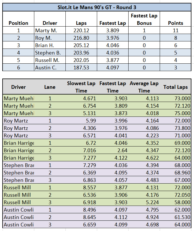 2012 Slot.It Challenge – Modern GT: Round #3 by Race Control • November 12, 2012 Attachments 2012_Slot-it_GT1_Series_1.xlsx (166 kB) December 16, 2012
