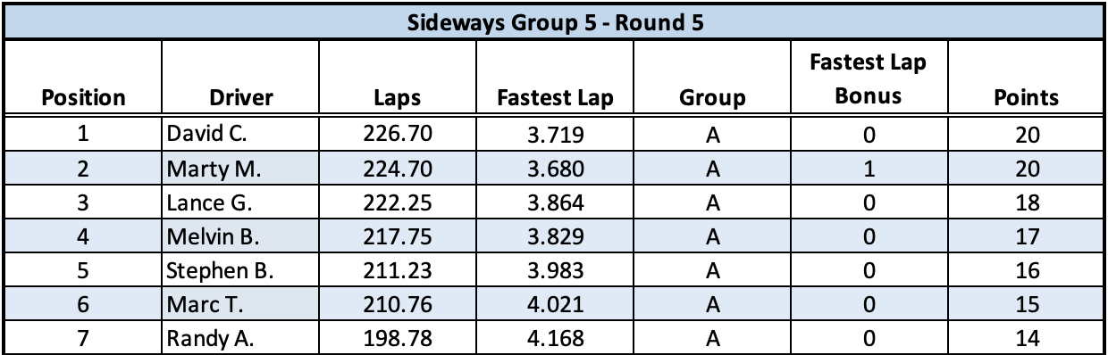 ← Racer Sideways Group 5 – Round 5