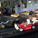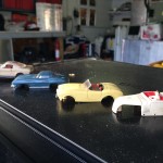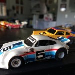 I soon got a Gulf Ford GT40 and performed surgery on the chassis, removing any piece of plastic that was not needed. I soon had a lightened and air-cooled chassis that looked like the AFX; which came out a year later. I drilled out the idler gear, changed the pinion and crown and got some new hubs and sponge tires. Eventually I got some silver pickups and brushes. Both the Mustang and GT40 smoked all of my friends who had much bigger tracks. My cars created showers of white sparks as they chattered down the track, bouncing on the pickups as they wheelied from the torque! Eventually I got a white porsche and another car, both AFX with all the hop-up parts out of the box. I still modified what I could though! I only ended up with about 5 cars but they were prizes I spent several hours with. The GT40 and at least one of the other cars is in a momento box at my parents house … but its driving me crazy b/c I cant find them!