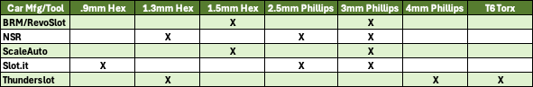 Was taking inventory of my tools the other day to see what I have and what I might be missing after all the moves over the past few years. There’s a lot of overlap so I put together a quick matrix make sure I only ordered what I needed. Thought someone might find this useful.