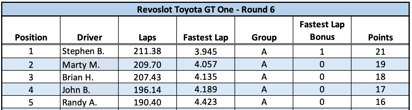← Revoslot Toyota GT-One Round 6 and Final Results