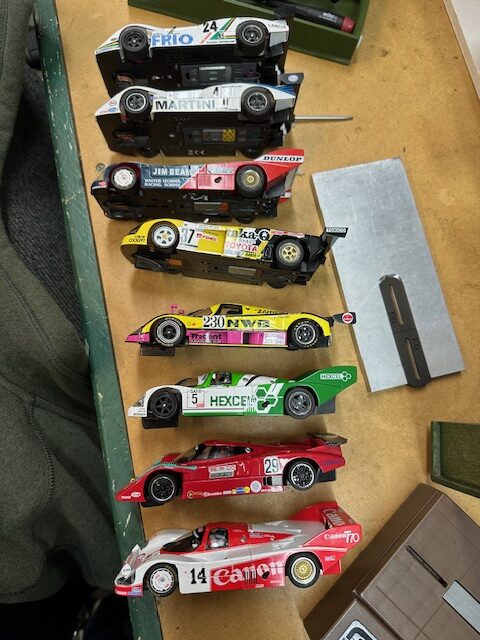 Marty, David, and John stuck with the tried and true favorites – Porsche and Lancia – both with attached wings that have always performed well on the clubs track. Brian was stepping out, as he usually does, to run a Toyota while Marc showed up with the latest Slot.it Mazda offering in the beautiful livery that looks a bit like the Partridge Family bus.