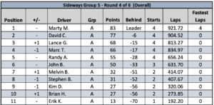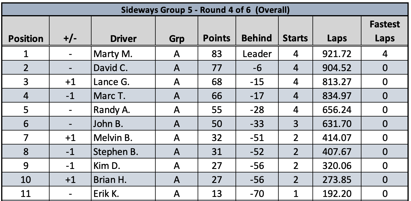 Racer Sideways Round 4 of 6 Leaderboard