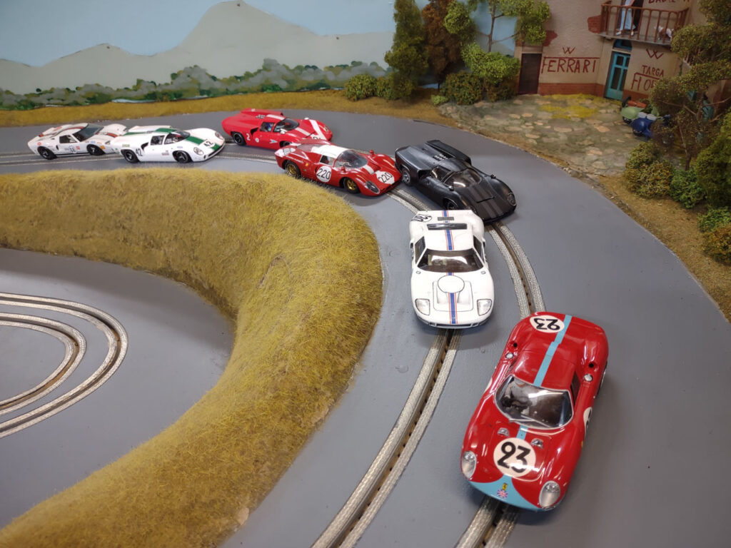 It was humid and warmish for the inaugural race of the 2025 Targa Florio at the Austin HQ. What was anticipated as a field dominated by GT40s was actually a Lola heavy grid, This was due to the Thunderslot T70s being deemed legal late in the game due to a scaling mixup earlier committed by yours truly.