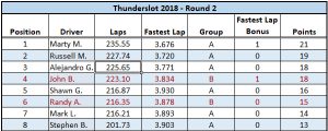 Thunderslot 2018 Race 2 Revised results