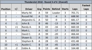 Thunderslot 2018 Race 3 leaderboard