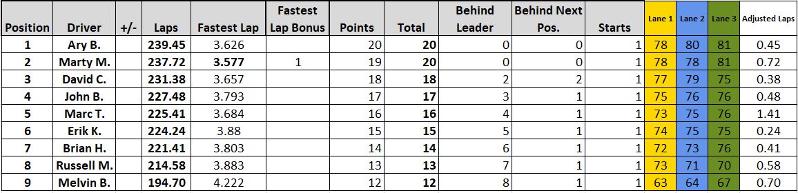 Congratulations to Ary for the win after a very long hiatus from racing at the track.